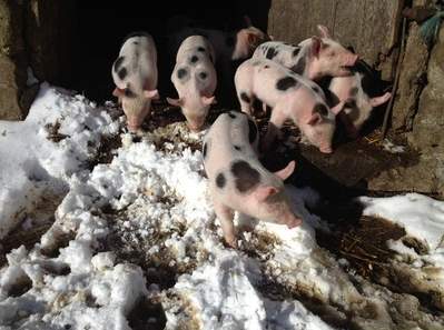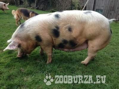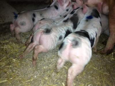Description: Pure pietrain gilts for sale, 4 in total, 12 weeks old, ready to go! As you can see on the photos they are great looking, wide shoulders, good length and great bums!! The pietrain is a fast growing low fat breed,they have a brilliant friendly temperament, we own 2 sows, we let them in the garden with our dogs,very inquisitive, another appealing character for us is they don't grow into massive sows (I would guess they weigh between 160 -180kg).